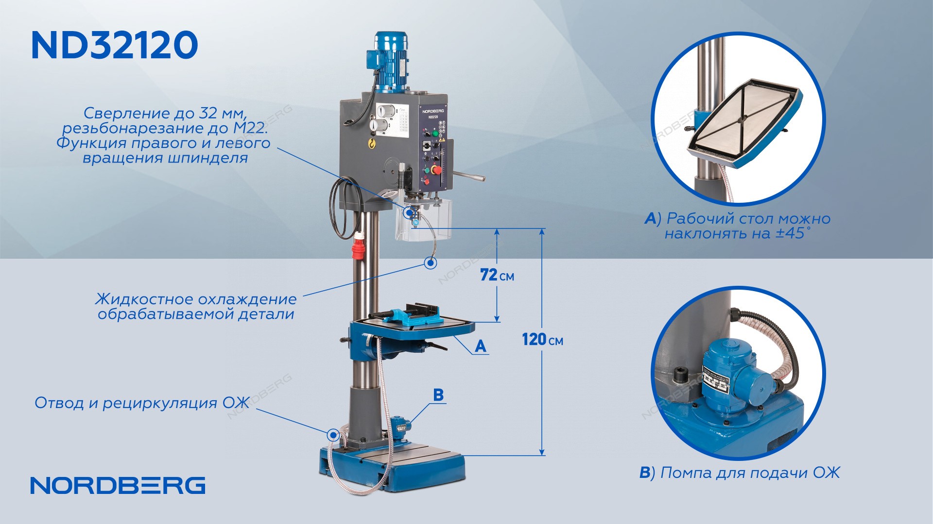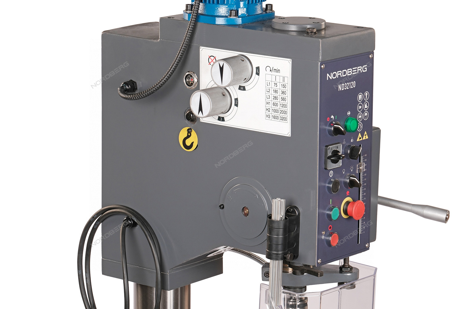 Промышленный сверлильный редукторный станок NORDBERG ND32120 – универсальный настольный станок, предназначенный для сверления, нарезания резьбы и других видов механической обработки металлов, полимерных материалов и т. д.