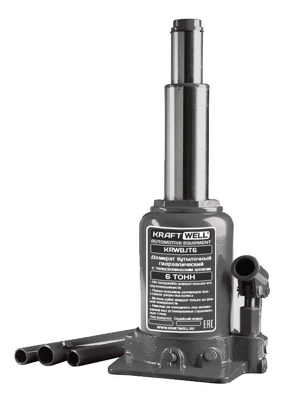 Домкрат бутылочный г/п 6000 кг, с телескопическим штоком KraftWell KRWBJT6 характеристики