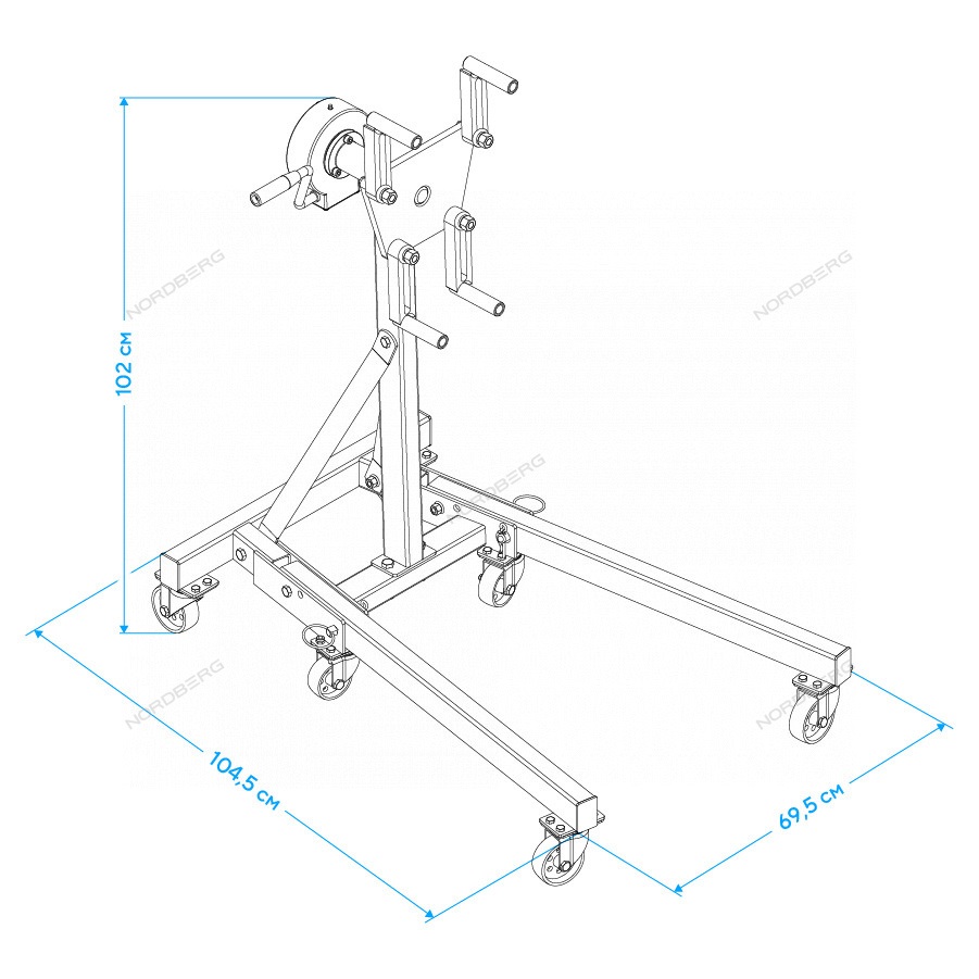 Стенд для ремонта двигателя с редуктором складной, 500 кг NORDBERG N30091R характеристики