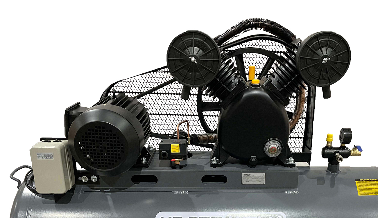 Поршневой компрессор с ременным приводом. Производительность 670 л/мин., давление на выходе 10 бар, ресивер 300 л., 4 кВт, 380В