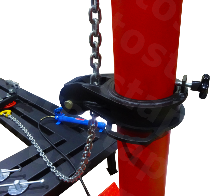Зажимы за отбортовку порогов имеют оригинальную конструкцию, разработанную с учетом устранения эффекта сползания и срыва. Узел сопряжения зажима со стойкой фиксации позволяет закрепить автомобиль с искривленной геометрией порогов, не ограничивая дальнейших перемещений детали кузова в плоскости и одновременно удерживать его в момент исправления.
