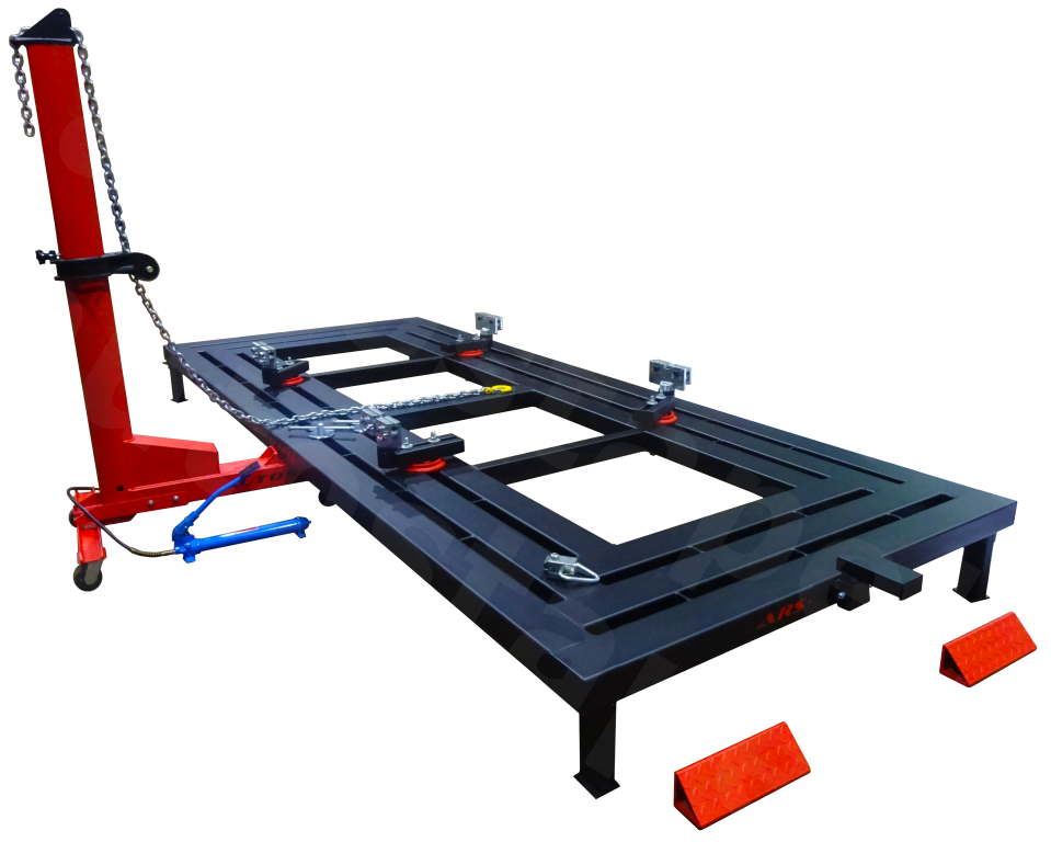 Стенд для восстановления геометрии кузовов и рам аварийных автомобилей ARS-8. 1 имеет просторную прямоугольную платформу, способную выдерживать максимальные нагрузки.