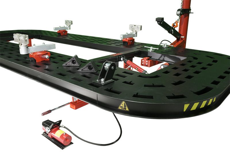 Для удобства эксплуатации и увеличения производительности, верхний лист платформы оснащён различными технологическими вырезами для фиксации цепей и дополнительной оснастки (подпятников гидравлических цилиндров, роликов для тяги вниз, струбцин). Для установки автомобиля на стапель стенд оборудован механизмом наклона платформы с гидравлическим приводом и механической лебёдкой.