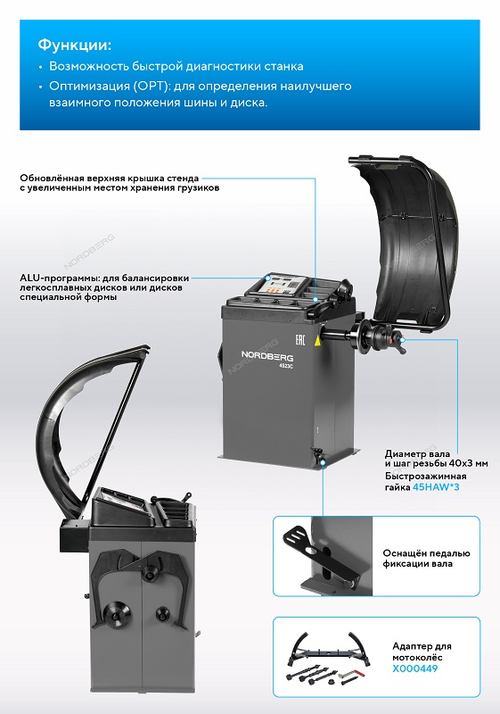 Станок балансировочный с ручным вводом параметров, серый Nordberg 4523C(G) характеристики