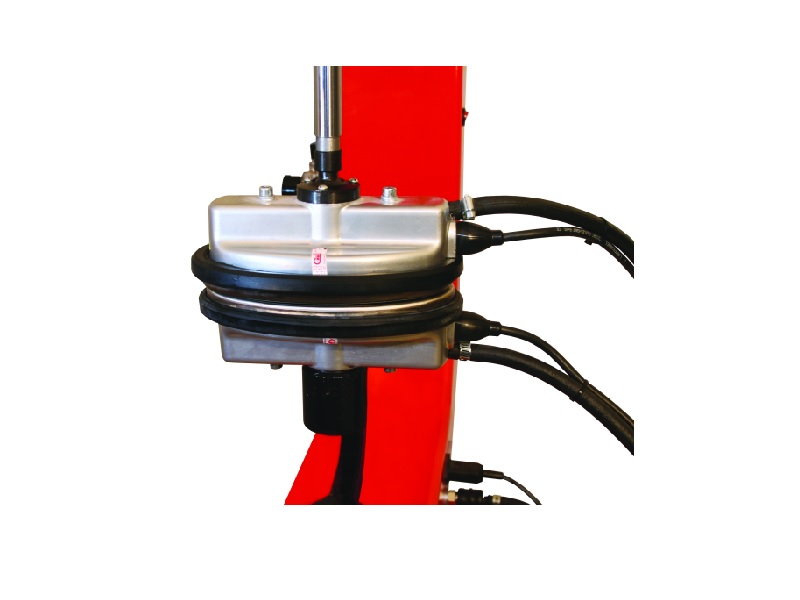 Перемещение нагревательных элементов осуществляется при помощи пневмоцилиндра, создающего максимальное давление на ремонтируемую зону более чем 900 кГ. Оба элемента снабжены электрическими и пневматическим разъемами, что облегчает техническое обслуживание вулканизатора и быстрый монтаж нагревательных элементов при установке на вулканизатор покрышек большого диаметра.