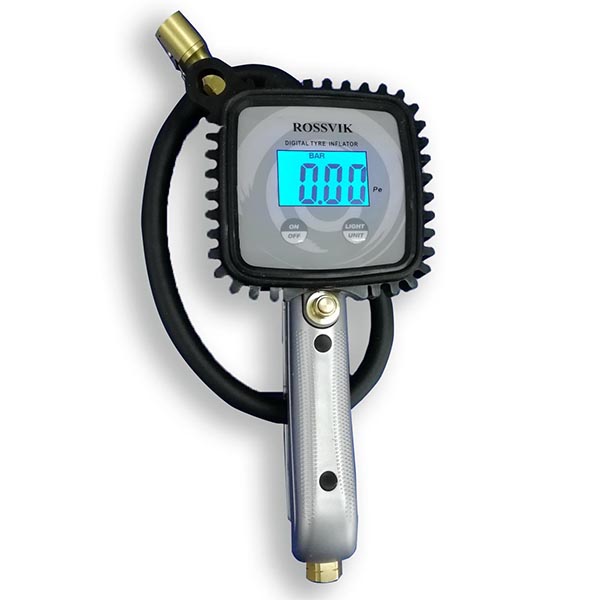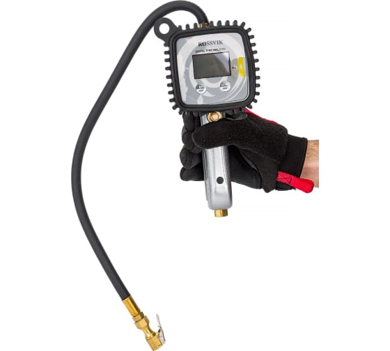 Пистолет накачки с электронным манометром ROSSVIK H20 поможет накачать шины автомобиля, велосипеда. Диапазон измерений: 0-12 бар.