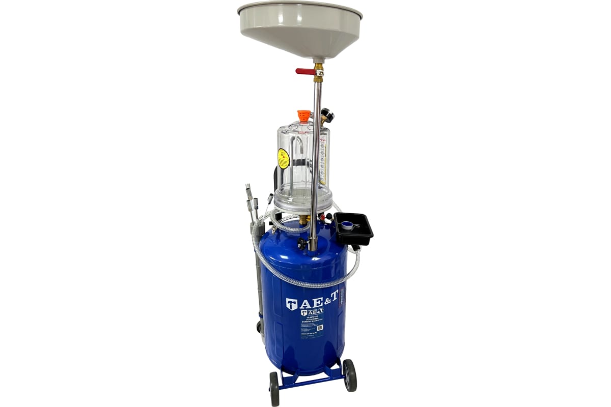 Установка замены масла AE&T 72 л, щупы+предкамера+воронка TF-6272TPG используется для замены отработанного масла через щупы или в воронку с предкамерой для визуального контроля.