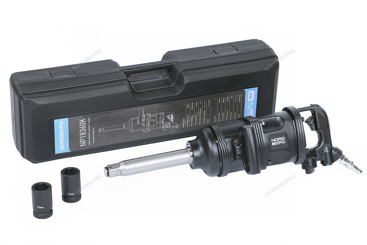 Пневмогайковерт ударный 1", 3600Нм, в кейсе с головками 32 и 33 мм NORDBERG NP18360K