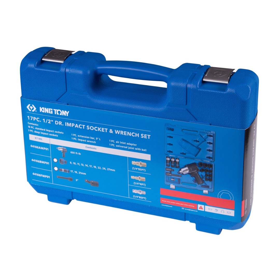 Гайковерт пневматический ударный 1/2", 881 нм, с комплектом головок, 17 предметов king tony 44106amp01