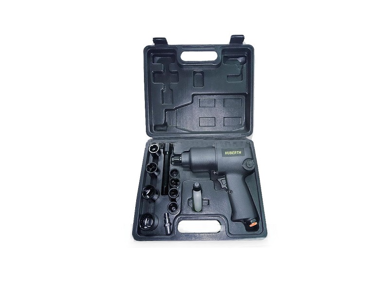 дарный пневматический гайковерт Huberth RP207423. С комплектом головок, удлинителем и резьбовым ниппелем для подключения сжатого воздуха.