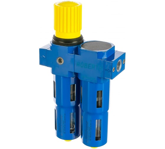 Экономичный фильтр с редуктором и контрольным манометром для двухступенчатой очистки сжатого воздуха от водного и масляного аэрозоля, а также механических загрязнений размером ≥ 5 мкм. Фильтрация последовательно осуществляется картриджем из пористой бронзы (первая ступень) и сменным фильтром тонкой очистки из вспененного полимера (2-я ступень).