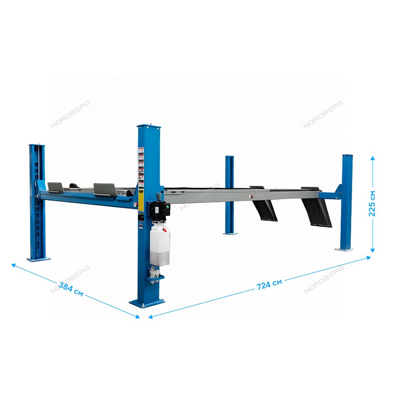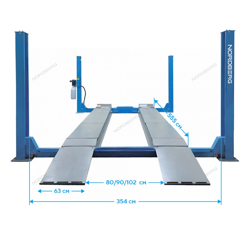 Подъемник четырехстоечный 5 т, c ручной траверсой 3 т n433, для сход-развала, электростопоры, синий nordberg 4450j_eb(m)