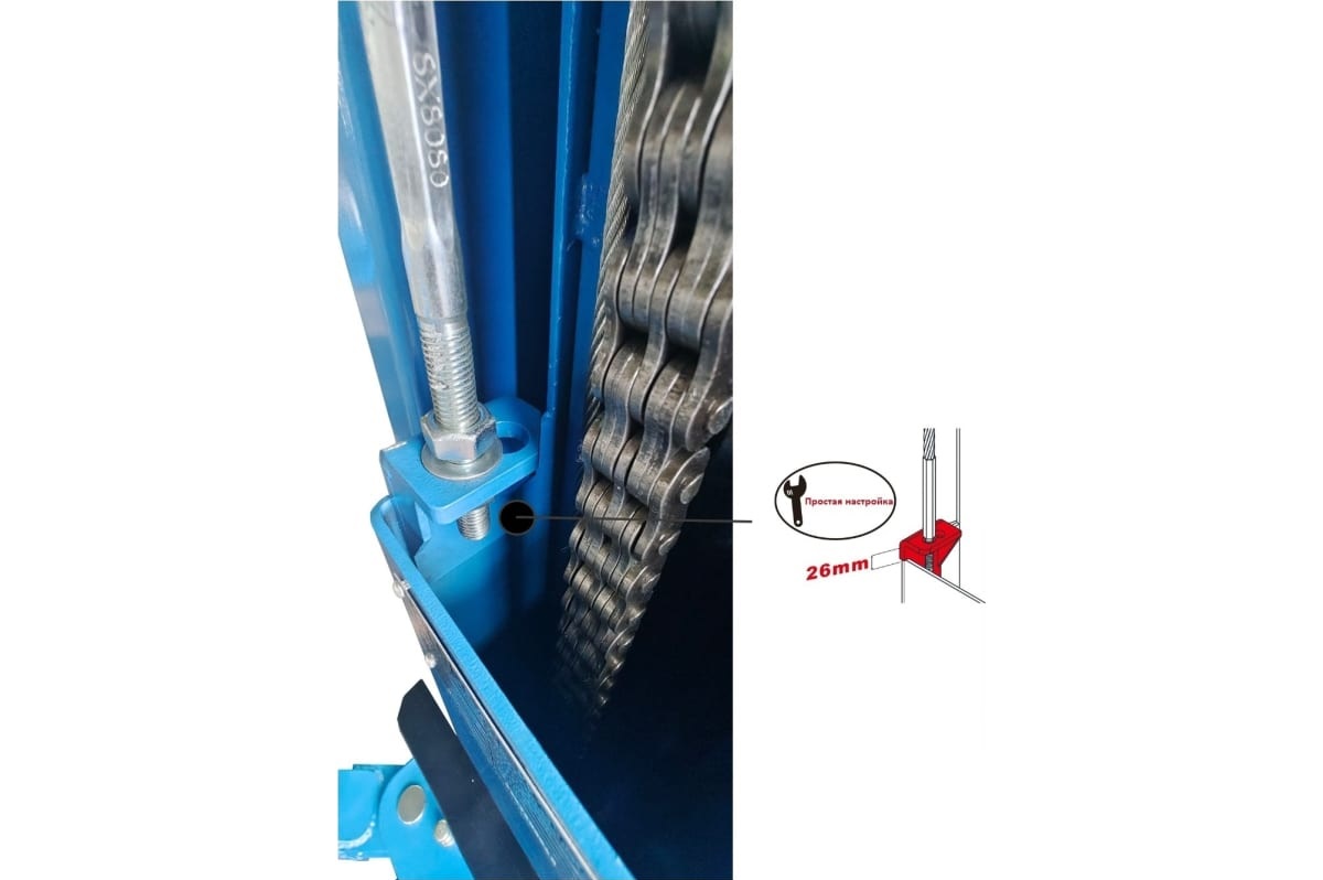 Увеличенная толщина металла, снятие стопоров с одной колонны, усиленные ролики.