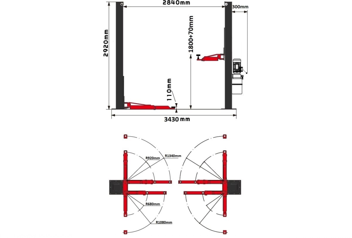 Электрогидравлический двухстоечный подъемник Г/П 4.0Т ROSSVIK V2-4LH.380.7016