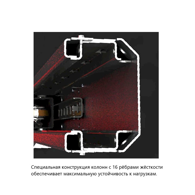 -Специальная конструкция колонн с 16 рёбрами жёсткости обеспечивает максимальную устойчивость к нагрузкам.