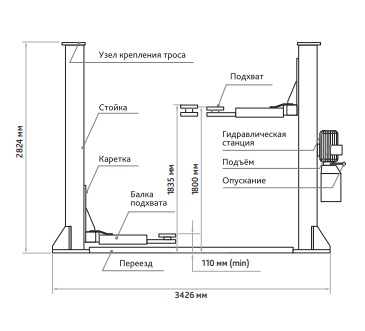 Электрогидравлический двухстоечный подъемник г/п 4т. Станкоимпорт ПГН2-4.0 (П) 220В характеристики