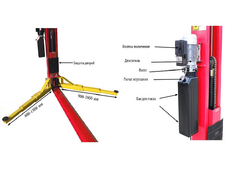 - 3-ех секционные лапы (900-1856), что идеально подходит как для работы с короткобазными авто, так и для дилннобазных микроавтобусов;
