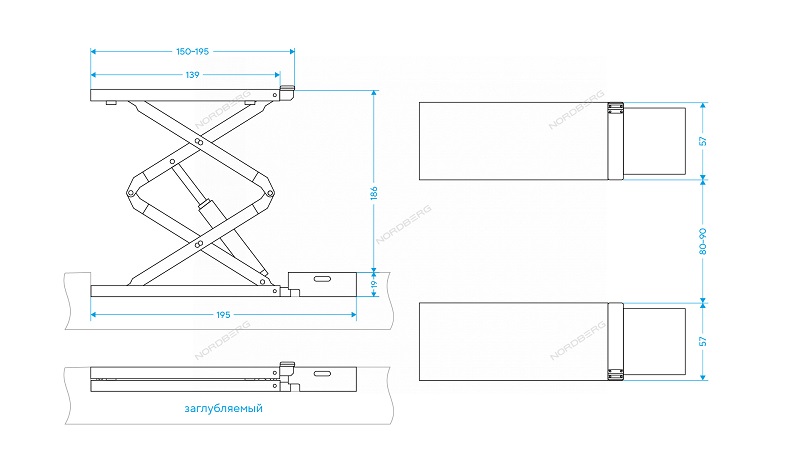 Ножничный подъемник г/п 4 т, 380 В, синий Nordberg N631-4B_380 характеристики