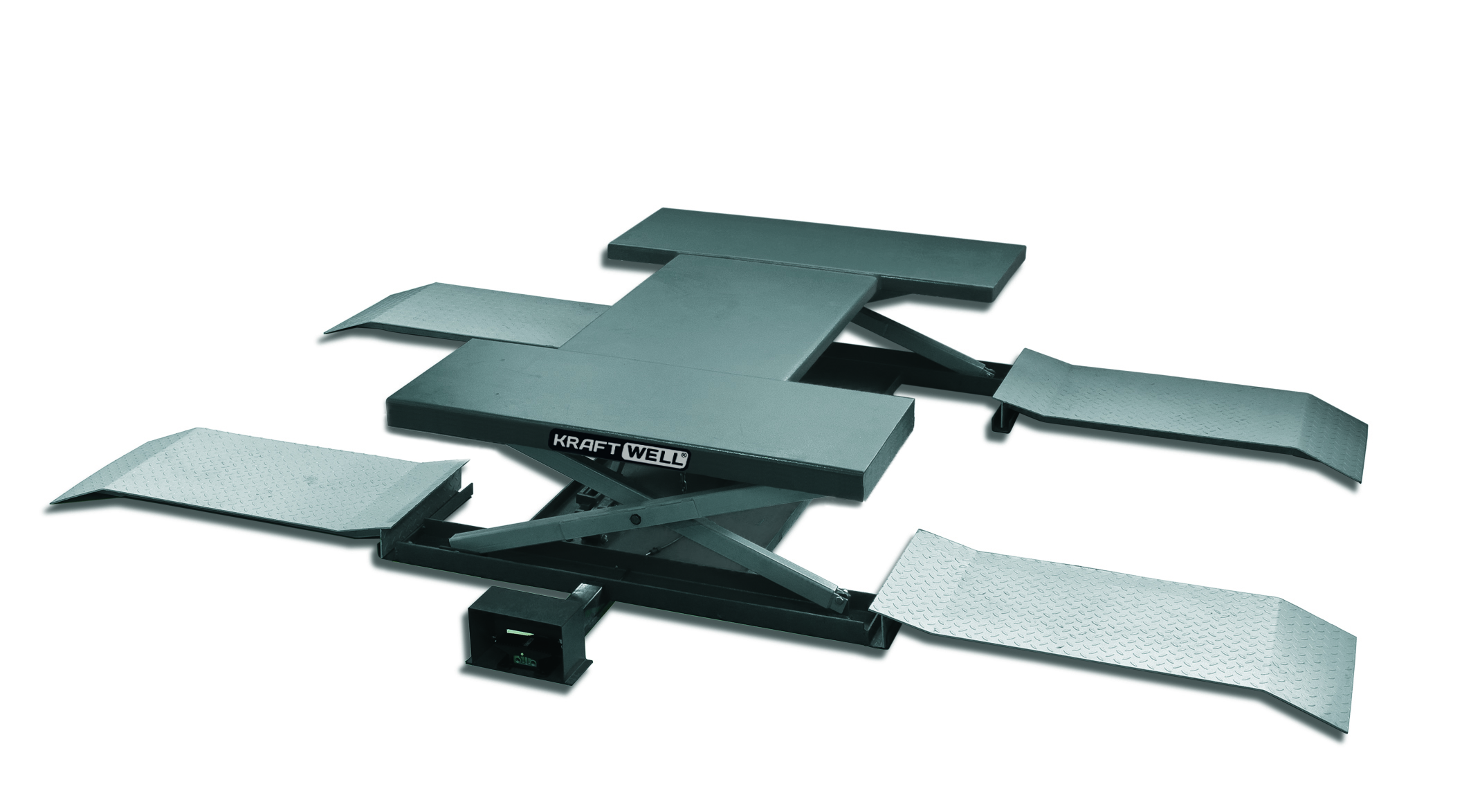 Ножничный подъемник г/п 2,5т. пневматический напольный с поворотными лапами KraftWell KRW260B характеристики