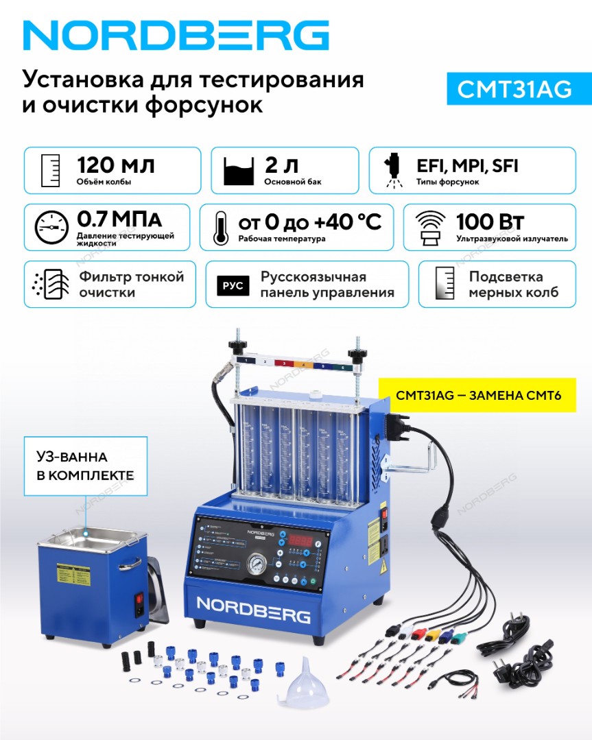 Установка для тестирования и очистки форсунок Nordberg CMT31AG характеристики