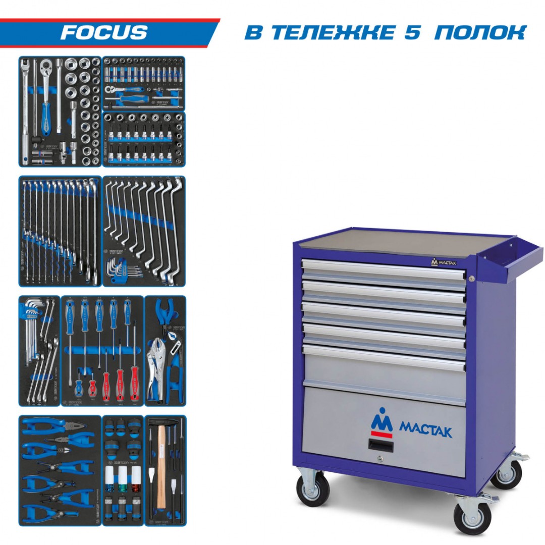 Набор инструментов 344 предмета, "специалист 344", в синей тележке мастак 50-07344b