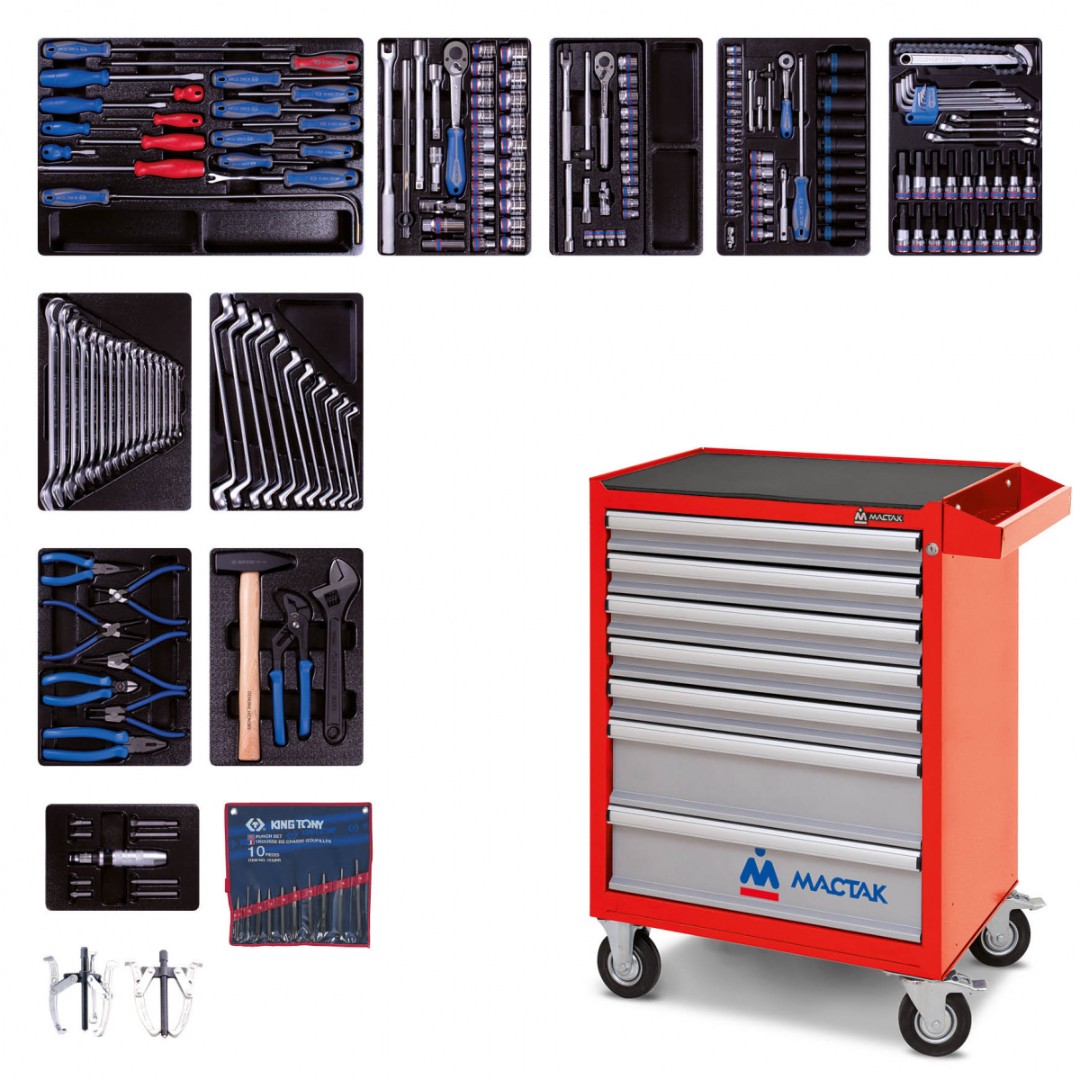 Набор инструментов в красной тележке, 204 пр. KING TONY 934-100AMR характеристики