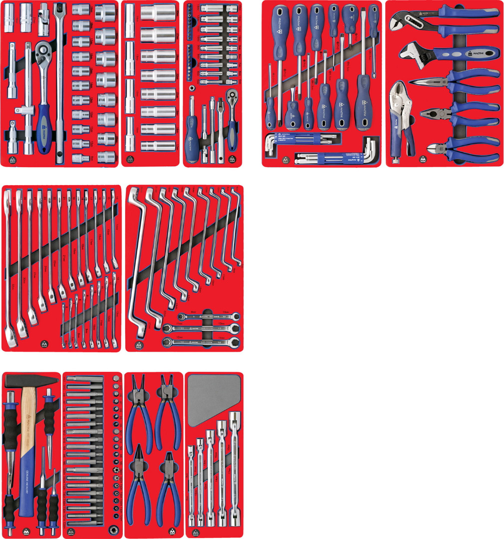 Разместив ложементы в инструментальной тележке удобным для вас образом – по типу, назначению или частоте использования, вы всегда будете иметь под рукой тот инструмент или приспособление, которое вам необходимо в данную минуту, а ячейки ложементов позволят содержать набор в полном порядке.