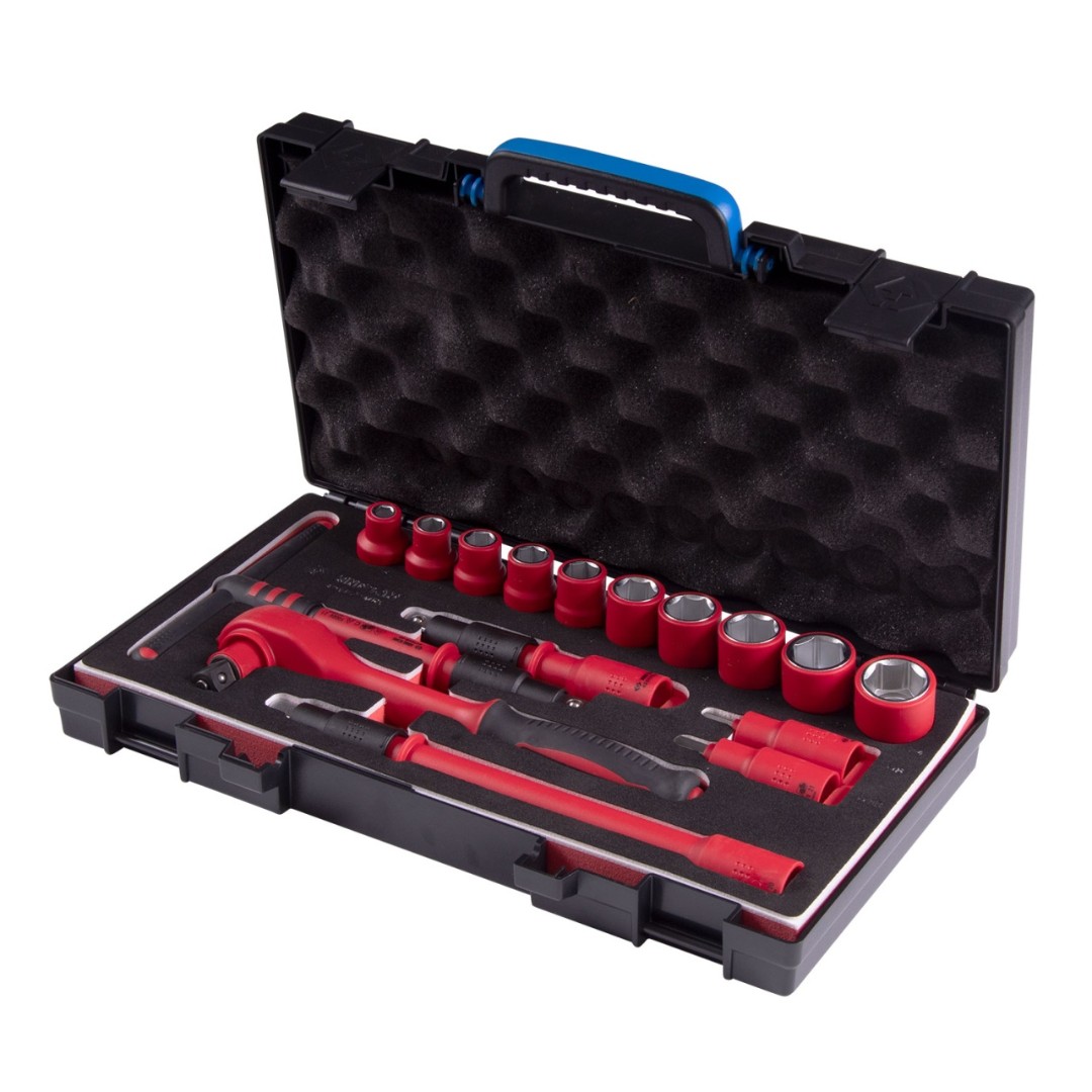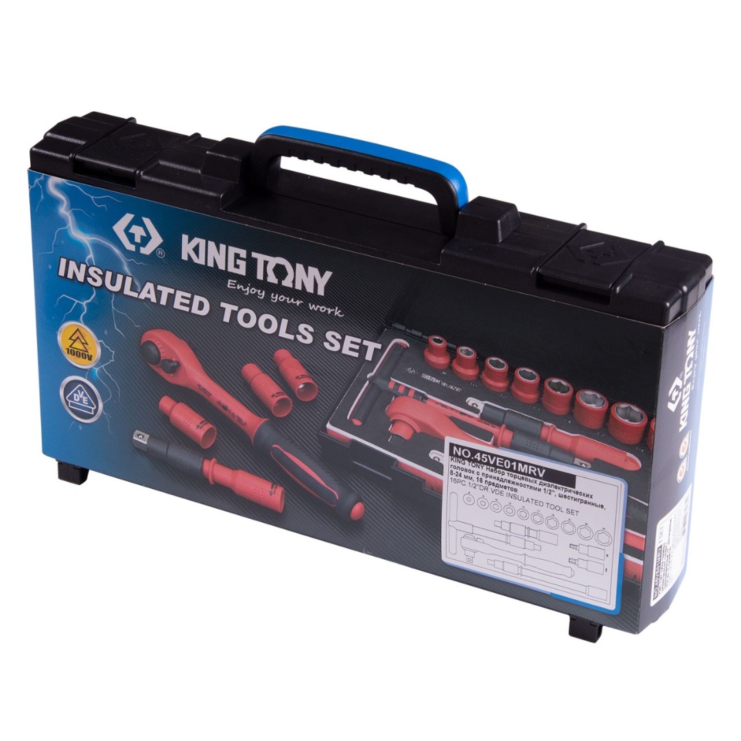 Набор торцевых диэлектрических головок с принадлежностями 1/2", шестигранные, 8-24 мм, 16 предметов king tony 45ve01mrv