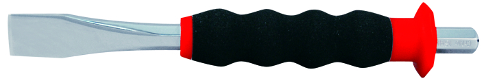 Удобная рукоятка зубила изготовлена из прочного пластика, покрытого мягким материалом на основе резины. Такая рукоятка хорошо защищает руку от отдачи во время работы с зубилом.