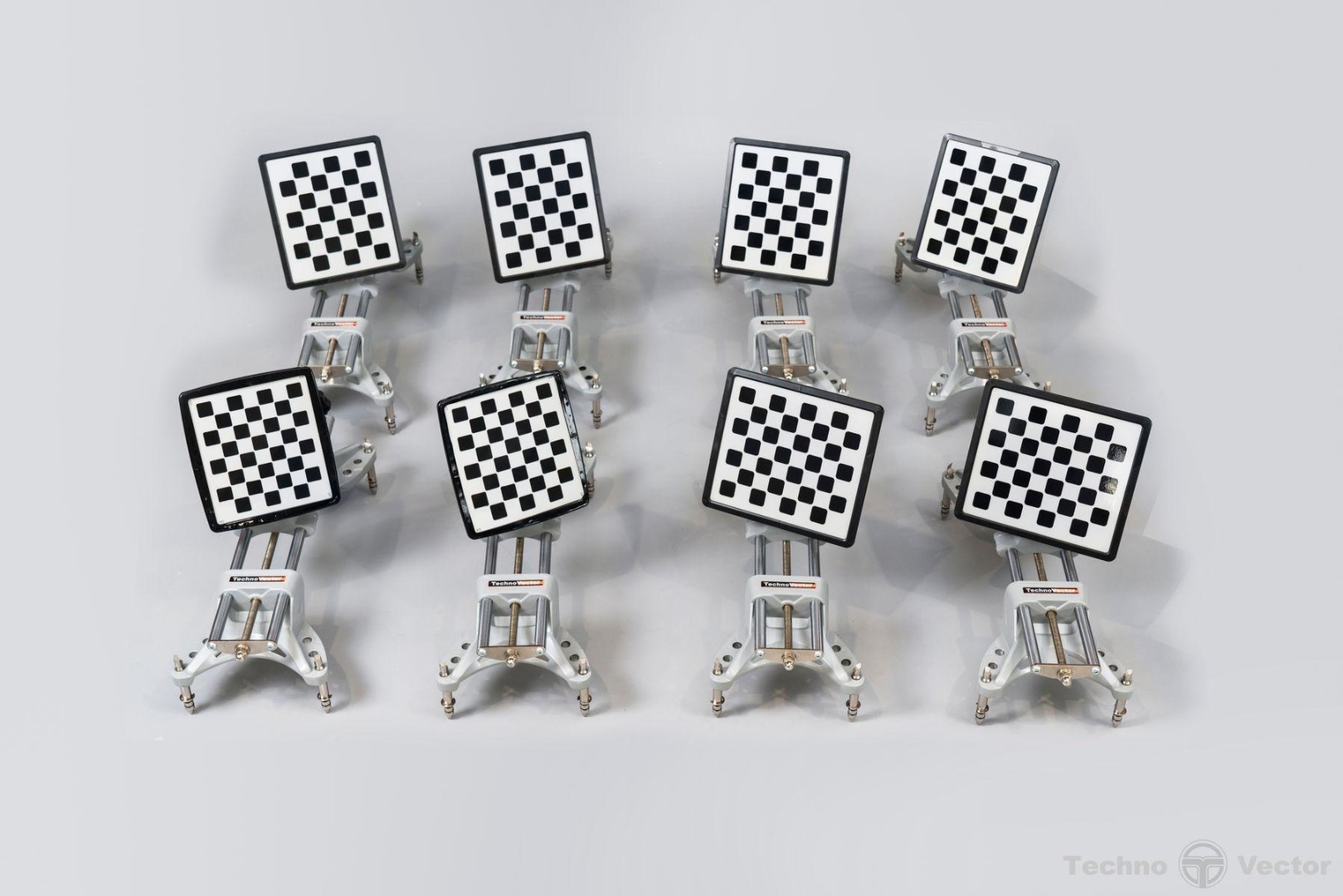 В комплект поставки входят 12 колесных адаптеров (захватов) и 12 измерительных мишеней, а также отдельно стоящие держатели для них.