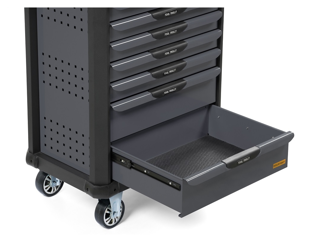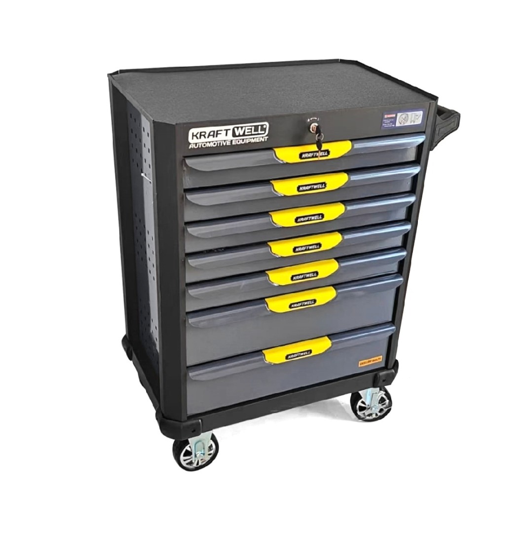 KraftWell KRW-T7D — это воплощение современных технологий организации рабочего пространства. Профессиональная тележка с семью вместительными ящиками создана специально для тех, кто ценит порядок и эффективность в работе.