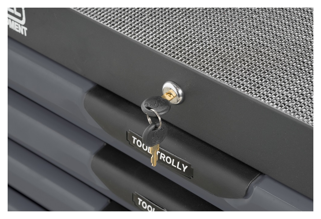 - Коврик из специального материала на верхней полке позволяет содержать инструмент в чистоте и предотвращает соскальзываение предметов на пол