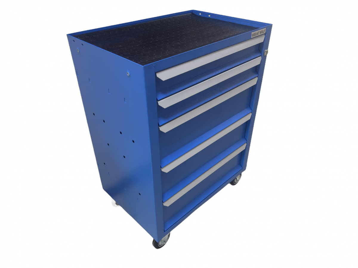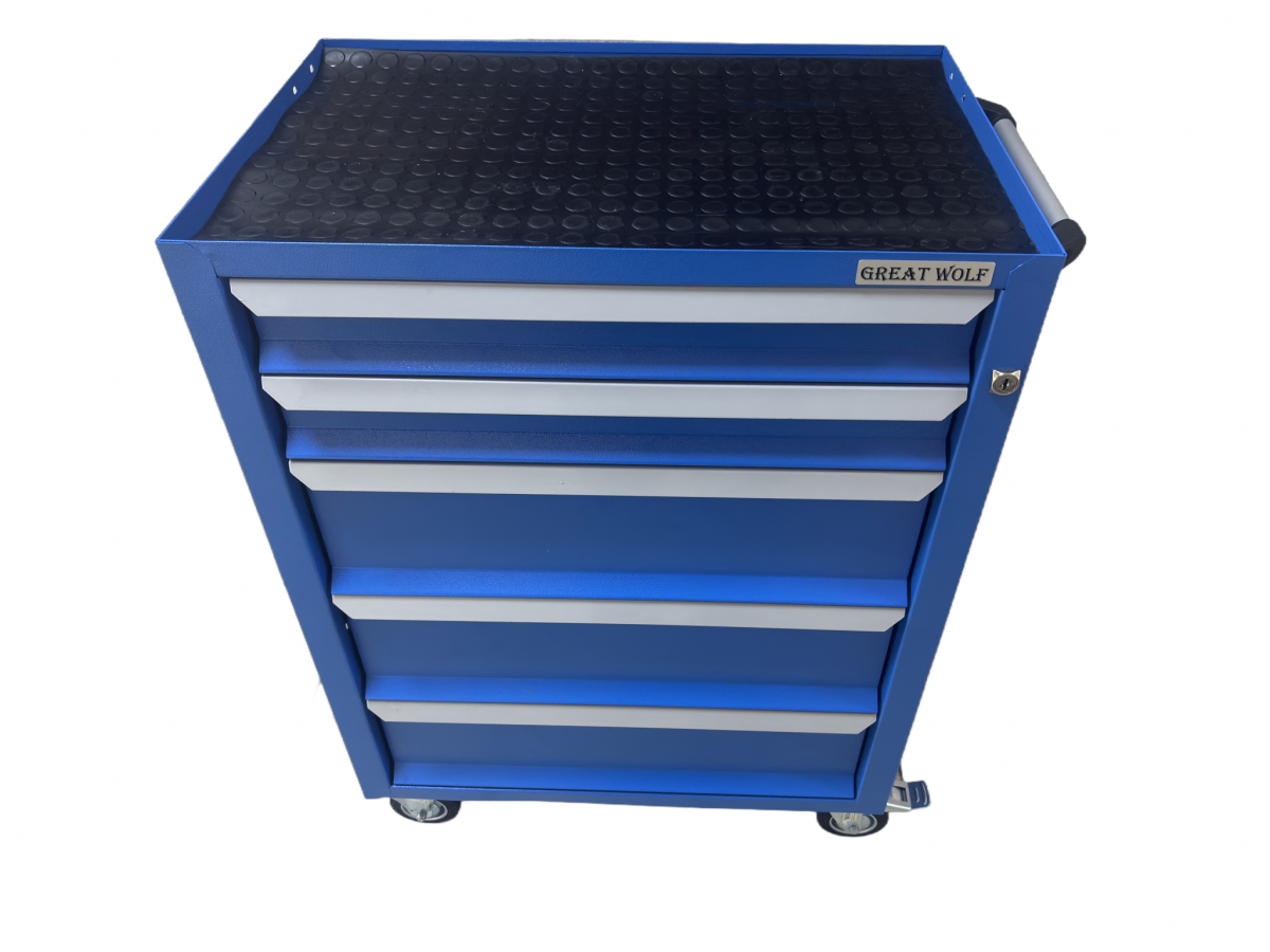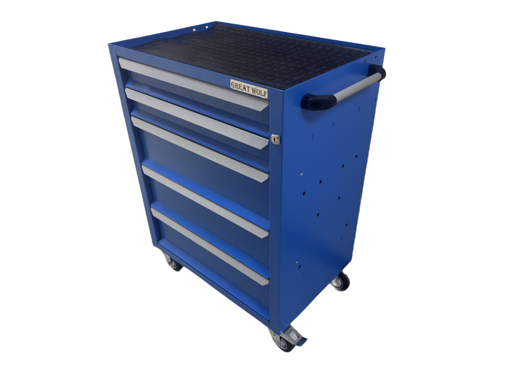 Инструментальная тележка (5 ящиков, колеса с тормозом, синяя) Great Wolf GWT-B5