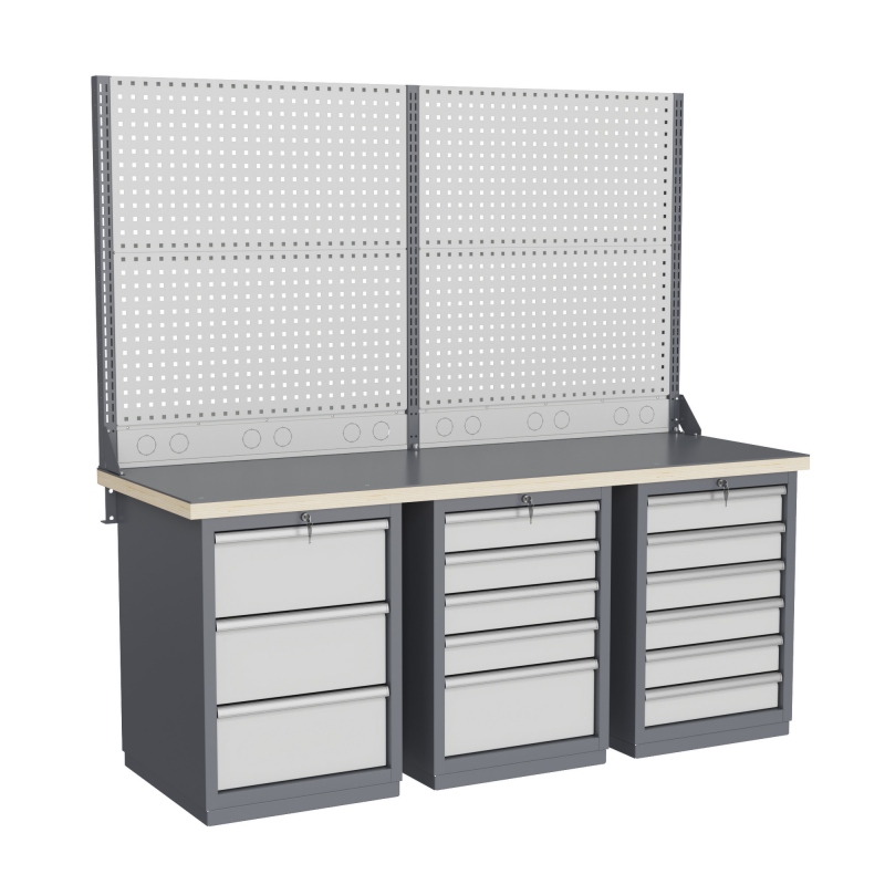 - широкий выбор различных тумб позволяет получить более 50 различных вариантов верстаков и рабочих столов под любые задачи;