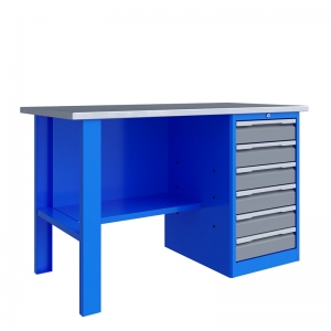 Тумба верстака - сварная. Ящики в тумбе устанавливаются на шариковых телескопических направляющих полного выдвижения. В тумбе P6 установлено шесть малых ящиков. Внутренние размеры малых ящиков (ВхШхГ), не более: 103 х 397 х 520 мм. Внутренние размеры больших ящиков (ВхШхГ), не более: 222 х 397 х 520 мм. Тумбы с ящиками снабжены общим центральным замком с поворотом ригеля 180 градусов и подпружиненной тягой. В комплекте два ключа.